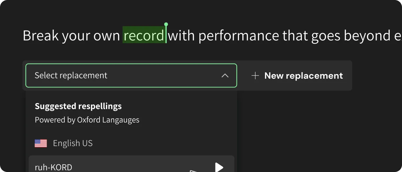 Create pronunciation rules for brands, acronyms, and technical terms. Oxford Dictionary integration included.